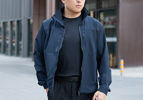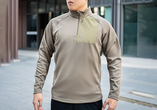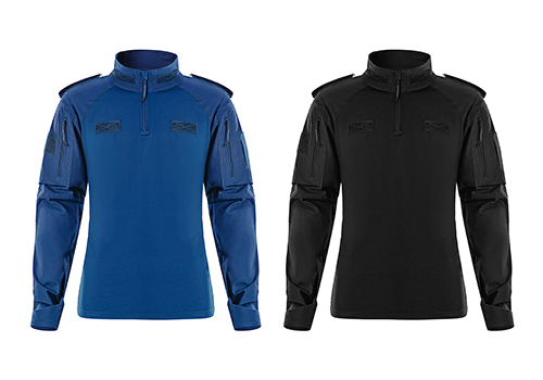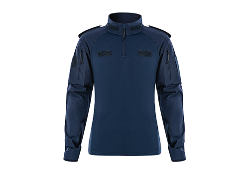 上衣针织接合梭织面料,其它部位采用梭织尼龙+棉+氨纶格子面料,肘部采用考杜拉500D尼龙面料,内可加高弹护肘。